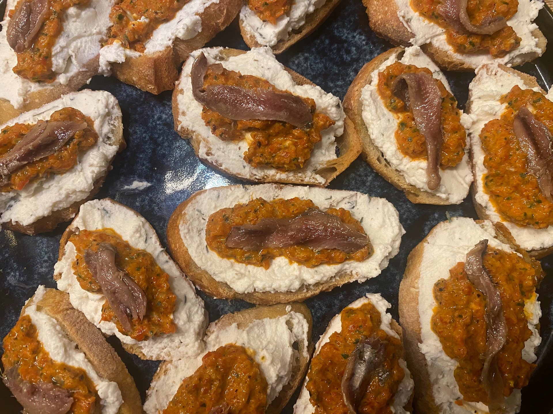Crostini mit Ricotta, Sardellen und Paprika-Gremolata